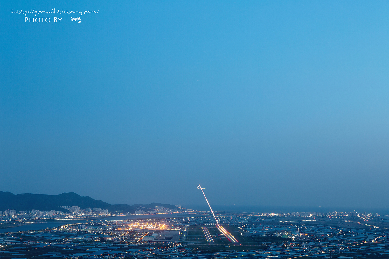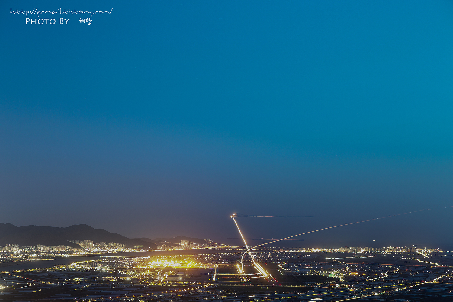 바람도 심하고 미세먼지로 시야마저 흐렸던 지난밤 돗대산에서 담은 김해공항 사진입니다.