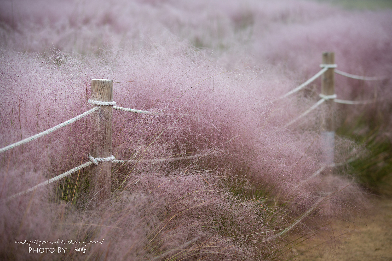 생태공원에는 아름다운 핑크 뮬리가 반겨 줍니다.