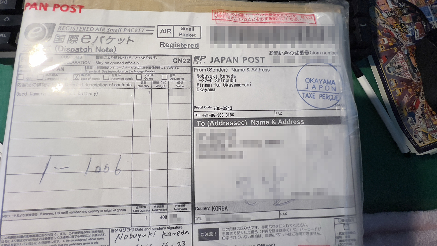 트래킹 넘버와 개인정보는 지웠습니다.