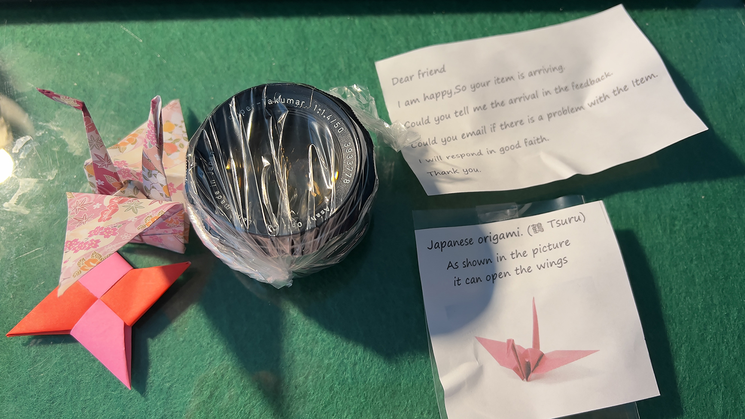 종이학도 들어 있고 안부와 구매에 관한 글도 같이 넣어 보냈네요.
