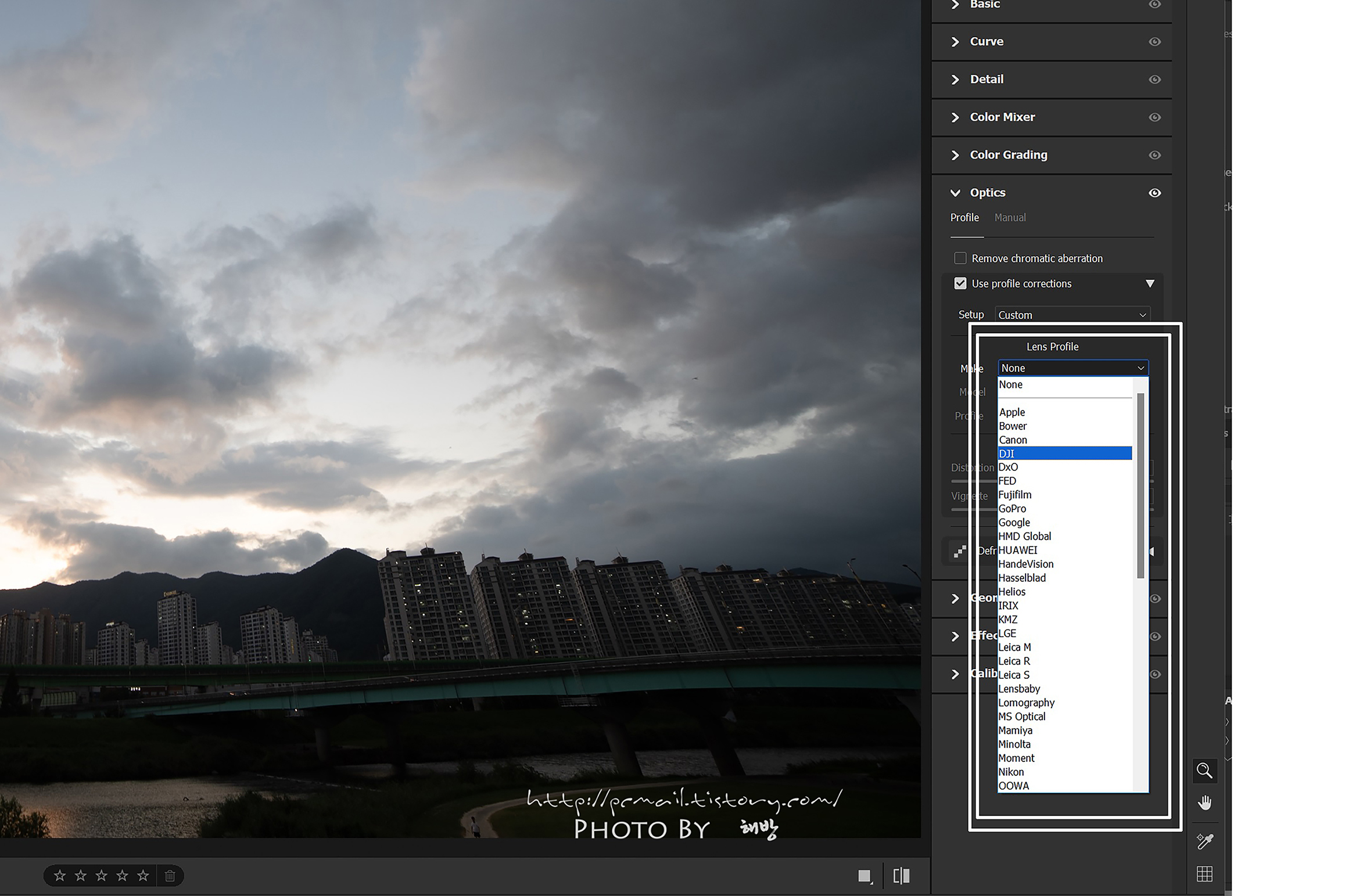 없어도 포토샵 자체에 삼양렌즈의 프로파일을 가지고 있습니다.