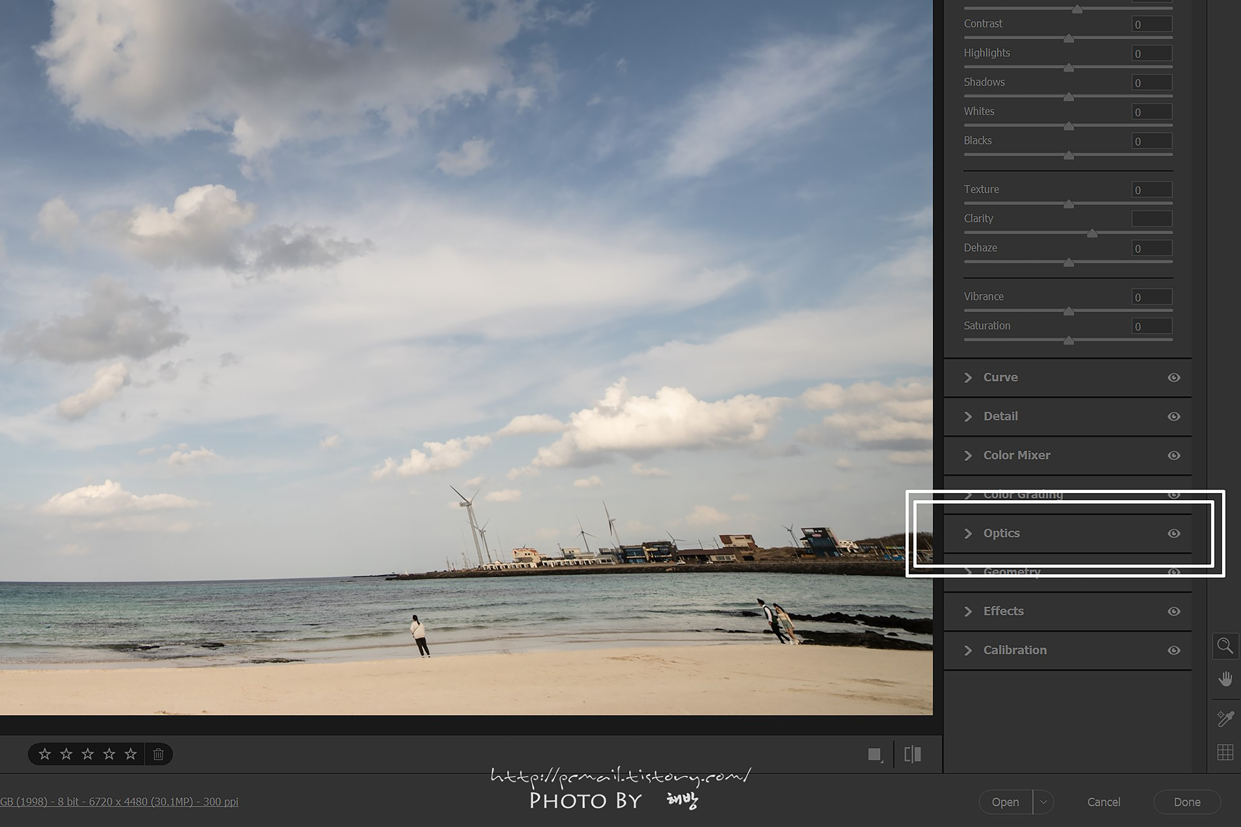 해변의 사진처럼 왜곡된 부분이 바로 잡히면 더 나은 경우도 있습니다.
